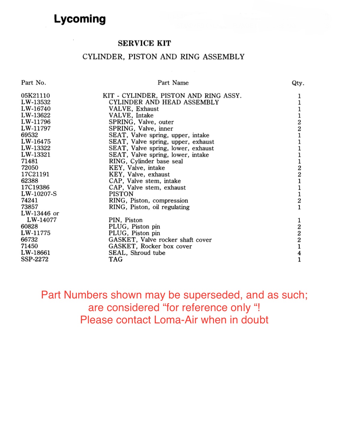 This Cylinder kit is approved for use on the following engine models*: